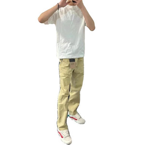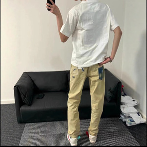 2025 レトロ英国春夏薄いカモメ刺繍ポケットシンプルなズボン男性と女性のためのルーズストレートカジュアルパンツトレンディ