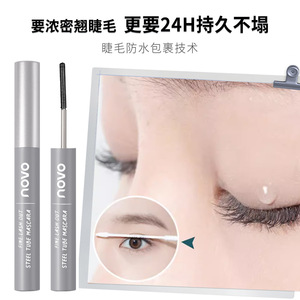 NOVO 細いまつげ、優れた小さなスチールチューブマスカラ、自然な立体カール、長く、厚く、速乾性、防水性、にじみにくい