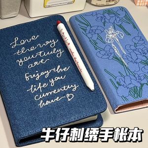 Xiaohongshuと同じデニム刺繍ハンドブックノート学生インスタイルニッチデザインスケジュールメモ帳