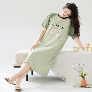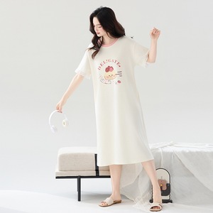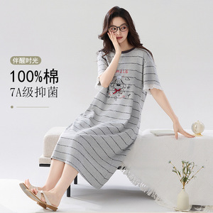 クラス A 抗菌綿ナイトガウン女性の夏の半袖ドレス女性のロング少女漫画大きいサイズ綿パジャマ