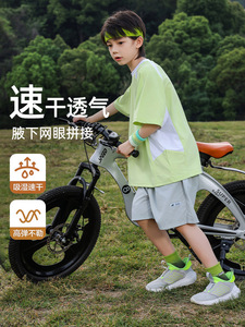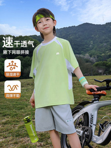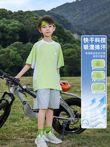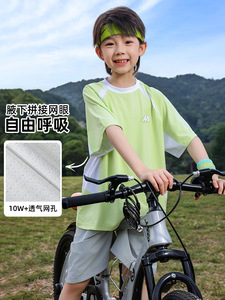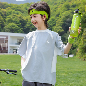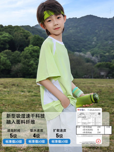 パンダ円2025新型涼感男児速乾衣接色中大童児童運動半袖tシャツ