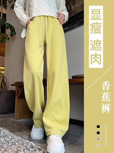 女性用ナローバナナパンツ 2025 新作春ワイドレッグパンツ シミターパンツ シモレモンイエロースウェットパンツ