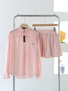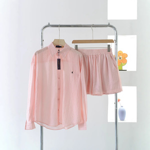 オリジナル/RLラフ エアコンシャツ ストライプスーツ レディース ポニーロゴ刺繍 リネンシャツ ポロカラー 2点セット
