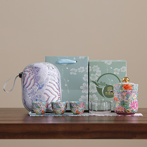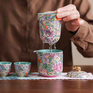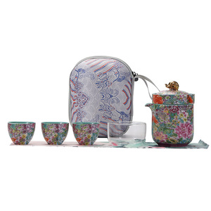 エナメル色屋外旅行カンフーティーセット内胆一壺四杯快客杯ガラスカッププレゼント
