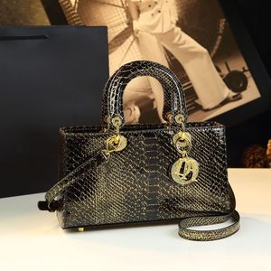 2025まぶしい色の蛇の紋様のハンドバッグは女性の本革を包んでファッションの高級感の斜めなショルダーバッグの横の項の戴妃の包みの潮を合わせます。