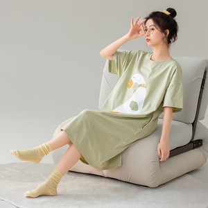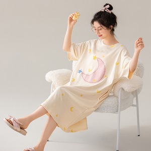 クラス A 抗菌綿半袖ナイトガウン女性のサマードレス女性のミッドレングス女子学生綿パジャマ女性
