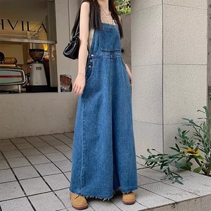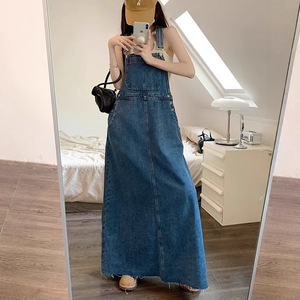 ソルトサスペンダースカートデニムドレス女性のための 2025 夏の新しいルーズスリム背の高いスーパーロングスカート