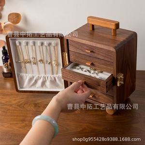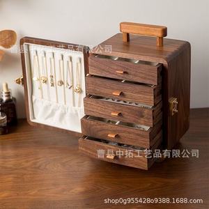 黒胡桃実木ジュエリー収納ケースシングルドア引き出し式五層ピアスネックレスアクセサリーケースハイエンドポータブル
