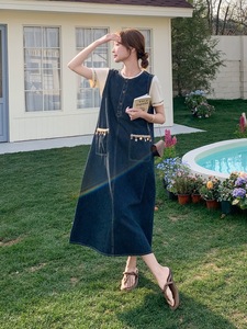 レトロファッションデニムベストドレス女性のための 2025 夏の新しいルーズフィット痩身ミッドレングスノースリーブドレス