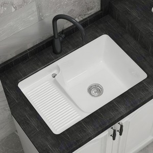 バルコニーセラミックアンダーカウンターボウル洗濯ボウルシングルボウルシンク洗濯板付き洗濯プールシンク埋め込み