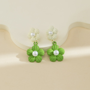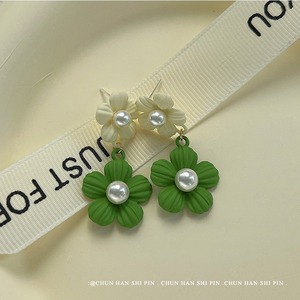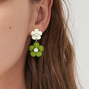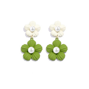 简约气质绿色清新撞色花朵耳环夏日森系小众甜美新潮气质耳坠耳饰