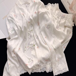 新中式盘扣国风高级感薄款冰丝长袖睡衣女春夏新款2025家居服套装