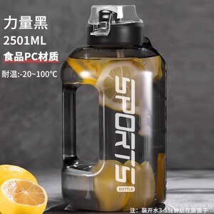 ブラック-2.7L [食品グレード PC] + ストロー + カップブラシ + ストローブラシ + 火傷防止パッド