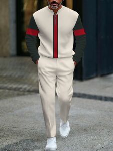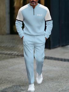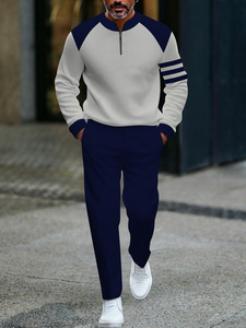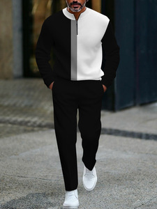 独立したヨーロッパとアメリカのアマゾンの新しいハーフオープンフロントジッパープルオーバーカジュアルファッションメンズ長袖パンツスーツ