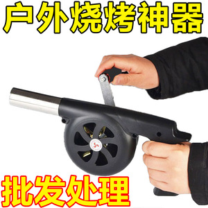 屋外の手を振って助燃送風機を手動でバーベキューします。
