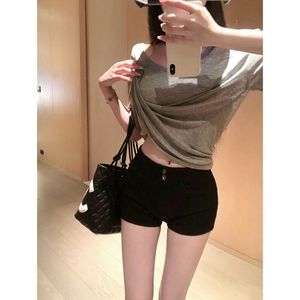 アメリカンカーキデニムショートパンツ女性用2025新しいハイウエストスリムストレッチホットガールヒップカバーアウターウェアAラインホットパンツ