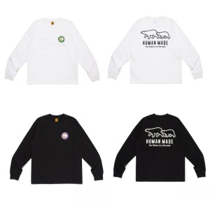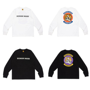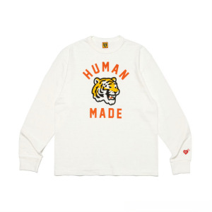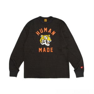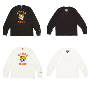 2025年新登場! HUMAN 日本のレトロな愛の虎の頭の漫画プリントヘビーウェイト長袖 T シャツロング T シャツ