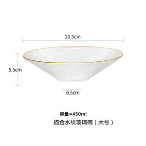 プノンペン斗笠碗水晶ガラスサラダ碗家庭用食器高級感ストライプ果物デザート碗皿高顔値
