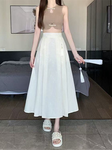 新しい中国風のスカート、大きいサイズ 100kg、着用可能、ウエストゴム、スリム、改良された馬面プリーツスカート、トレンディ