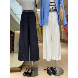 ミッドボーンラインデザイン、スリムでソフトなウォッシュホワイトワイドレッグジーンズ、ベルト付きの薄手のルーズストレートカジュアルパンツ