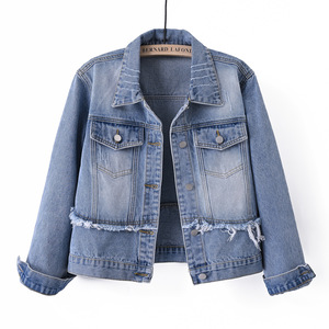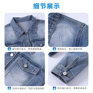 デニムのコートの女性のショートタイプの2025春と秋の新型の小さい子の百合の洋風のデザイン感の上着の修身ジャケット