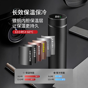 【インテリジェント温度表示】ビジネスブラック 500ML - 長時間保温 - カップブラシ+ティーセパレーター付き
