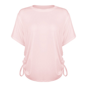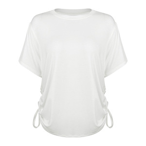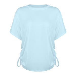 2025 春夏新作ヨガウェア女性用テンセルモーダルマルベリーシルクルーズラウンドネック T 通気性高弾性フィットネスウェア