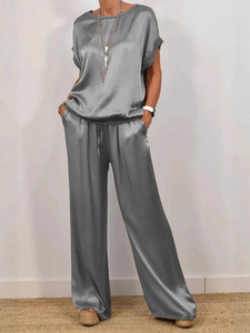 2025 春夏新作クロスボーダー貿易アマゾン独立ステーショントレンディなルーズシャツワイドレッグパンツカジュアルスーツ