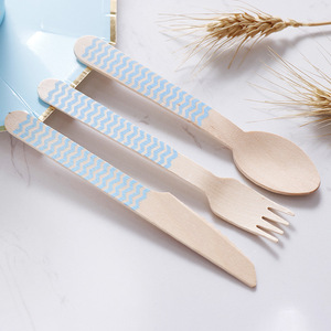 木製ナイフフォークスプーン印ロゴケーキデザートスプーンパーティー高級カラー印刷木製食器使い捨てフォークスプーン
