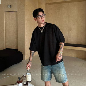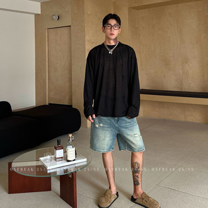 OXFREAK「スノーフレークテクスチャープリーツ」日焼け止め長袖Tシャツメンズ夏薄手レイジールーズボトムストップ