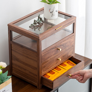 ブラックウォールナットデスクトップ収納キャビネットは積み重ねることができますティーセット収納ラックカウンタートップティーサイドボードティーテーブルディスプレイキャビネット