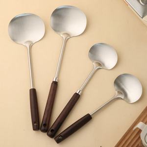 ✅ レトロな無垢材ステンレス鋼キノコスパチュラ調理家庭用長柄スプーンキッチン貴州スパチュラフライドスプーンスプーンキッチン用品