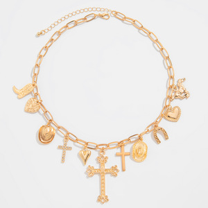 ヨーロッパとアメリカのクロスボーダージュエリーパーソナライズされたマルチクロスラブペンダントネックレスレディースデザインファッションネックレス鎖骨チェーン