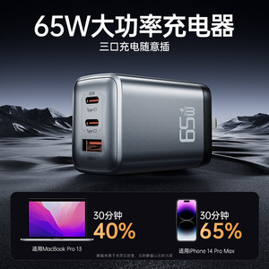 窒化ガリウム 3 ポート充電ヘッド 65W ハイパワー急速充電 USB 折りたたみ式ピン Apple Android 充電器に適しています
