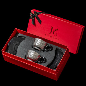チタンメッキバタフライ カップ2個、ソーサー2個(赤ギフトボックス)