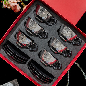 チタンメッキバタフライ カップ6個、プレート6個(赤ギフトボックス)
