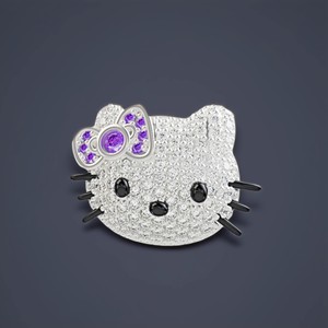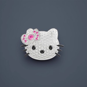 パーソナライズされた漫画キティピンクフルダイヤモンドイヤリング男性と女性用、キュートでユニークなハローキティ S925 スターリングシルバーイヤリング