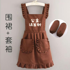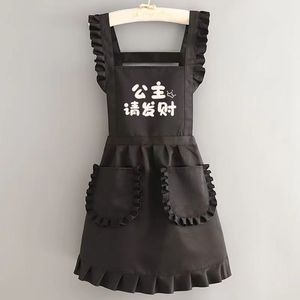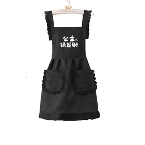 韓国版防汚エプロン家庭用キッチン調理エプロン女性用プリントケータリングミルクティーショップ洋風メイド作業服