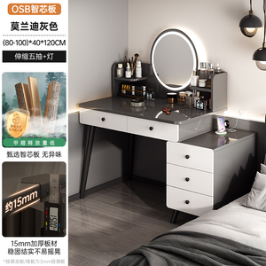 OSB スマート コア ボード ブランド カスタマイズされた 5 つの引き出し + サイド キャビネット + LED スマート ミラー + ペタル チェア 80-100cm モランディ グレー