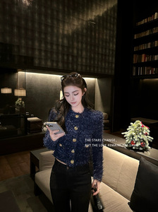 2025秋季新款法式小香风名媛轻奢金扣圆领气质时尚显瘦短款外套