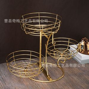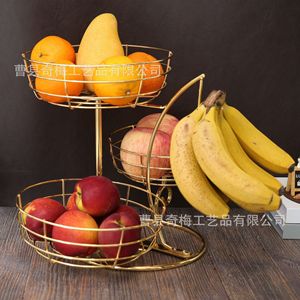 アマゾンの起爆二重は脱着可能な鉄芸収納果物かごバナナフック付き果物収納棚果物皿果物かご