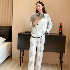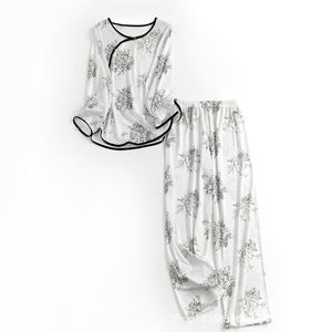 夏の新型中国風花開富貴パジャマ女性のゆったりとしたカジュアルな部屋着長袖パジャマセット