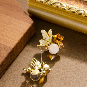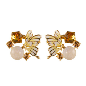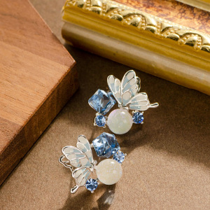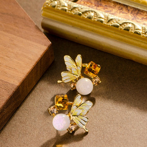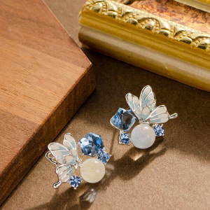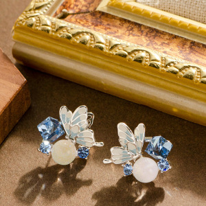 韓国版のスーパーフェアリースイートクリスタルドロップ釉蝶花イヤリング女性用ハイエンドライトラグジュアリースモールフレグランスシルバーニードルイヤリング