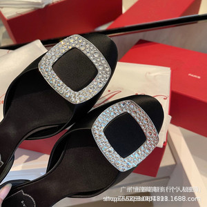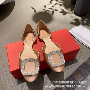 2025 新しい RV 女性の靴トレンディな春多用途サンダルサテンメタルスクエアバックル浅い口学生フラットバッグヒールシングルシューズ