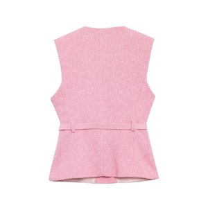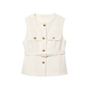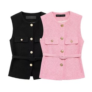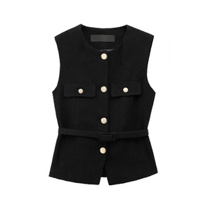 Zクロスボーダー2025春夏新作メタルバックルベルト付きパンクテクスチャーラウンドネックベスト2132904