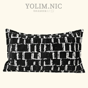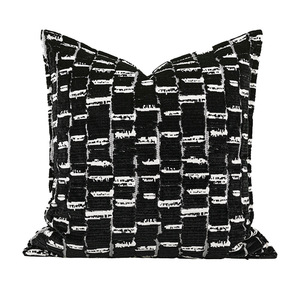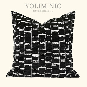 現代のシンプルで軽い贅沢な風の白黒の筋肉は毛を切って枕の客間のソファーを抱いて枕のホテルのサンプルの部屋のクッションに寄りかかっています。