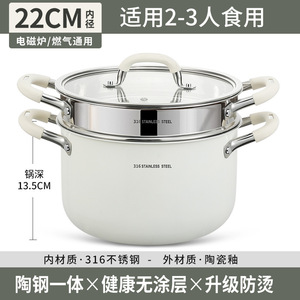 スープポット家庭用 2025 新しいコーティングされていない 316 ステンレス鋼の煮込みお粥セラミックノンスティックポット両耳ポット電磁調理器