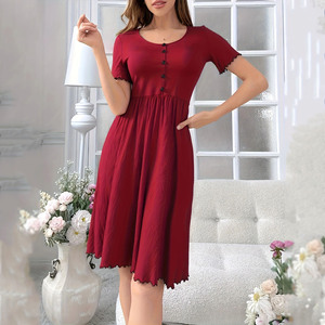 2025年 欧米風 レディース 夏用 ナイトガウン 外出着としても使えるワンピース ホームウェア 綿風 ボタン付き 半袖 パジャマ 欧米風ワンピース