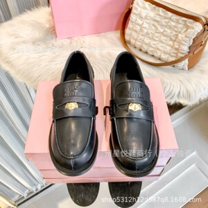 M金币乐福鞋法式复古小皮鞋2025 年早春款低跟英伦擦色一脚蹬女鞋