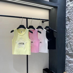 新しい刺繍入りスリングニットベストレターサマーホットガールスリムアウターウェア痩身スポーツノースリーブトップデザイン